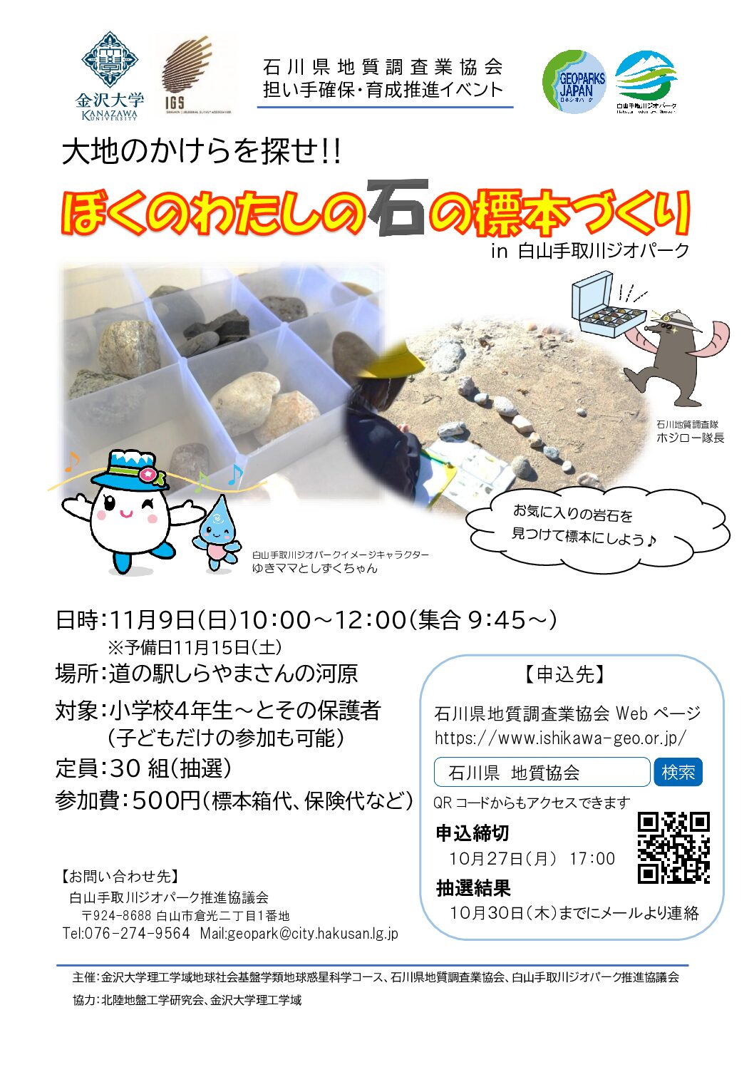 ぼくのわたしの石の標本づくりin白山手取川ジオパーク 延期について
